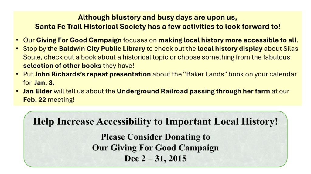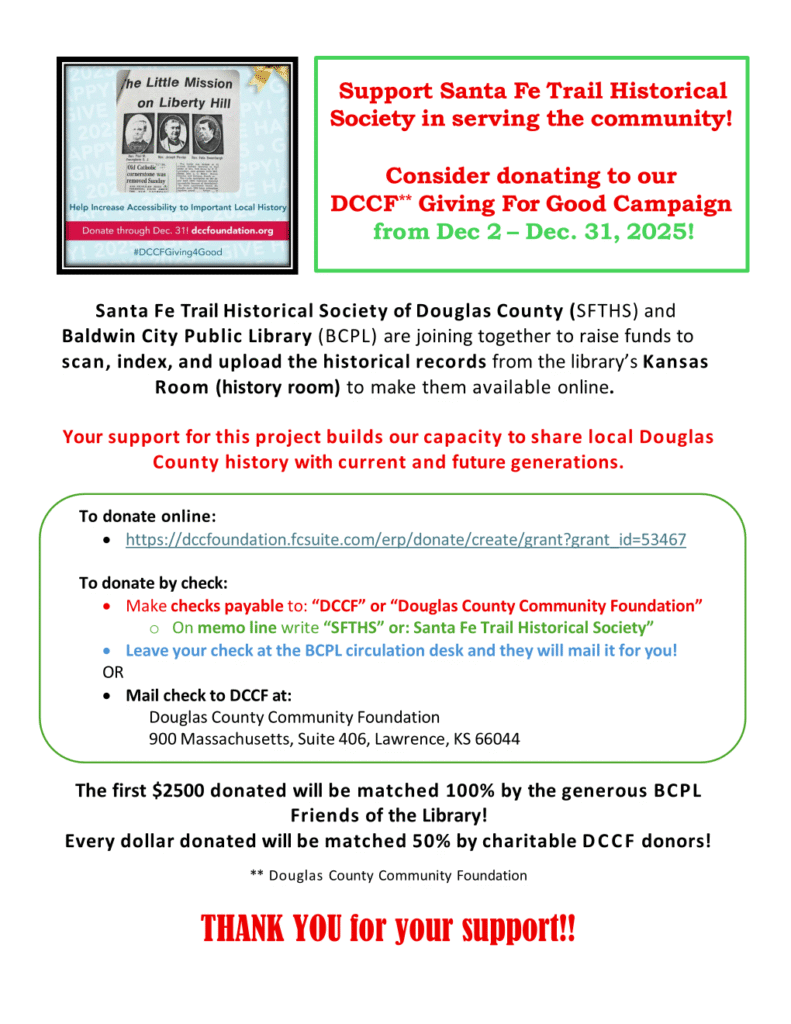 The Kansas Room is in the Baldwin City Public Library – 800 7th Street, Baldwin City 66006